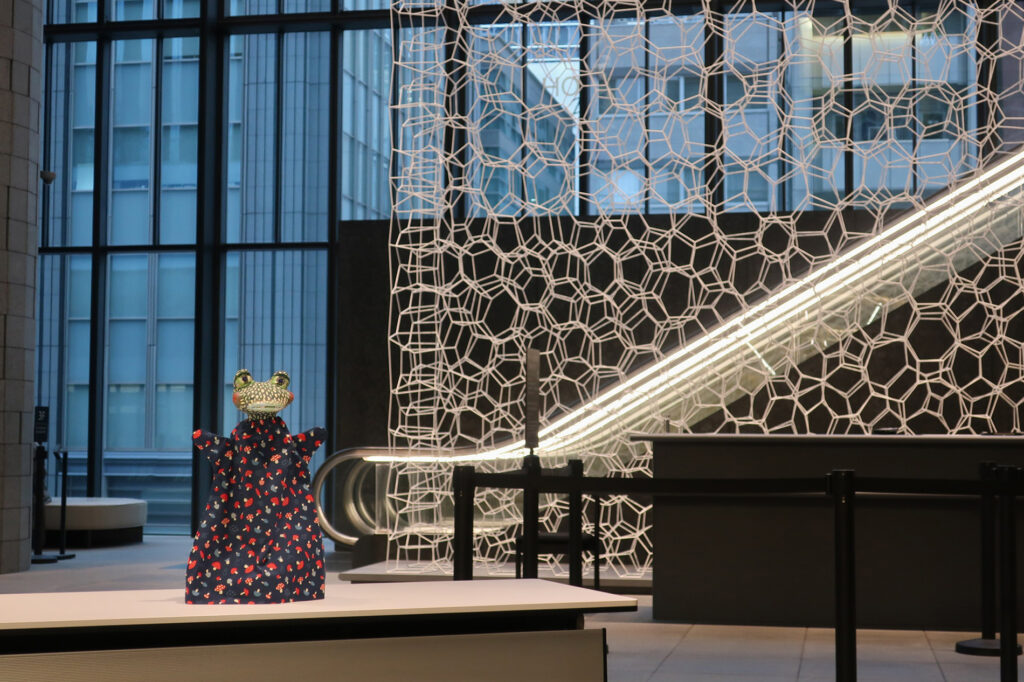 On their way out, when we had Frog-chan hold out its right hand and say, “Please come again,” the girl suddenly smiled and asked, “Huh? It can talk?” She even leaned in to carefully check whether its mouth was really moving or not—it was a very amusing moment.