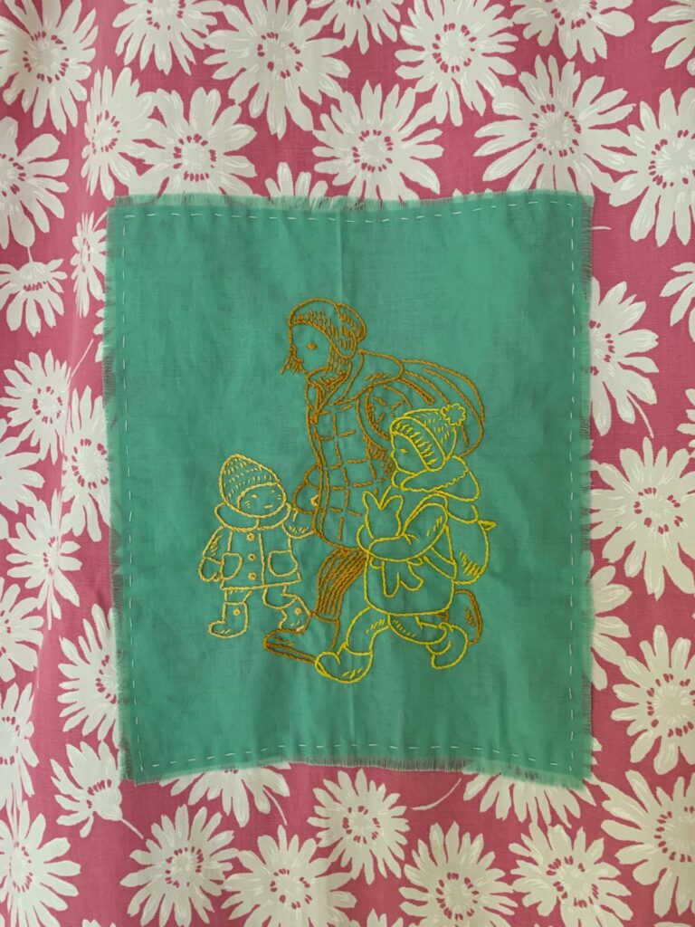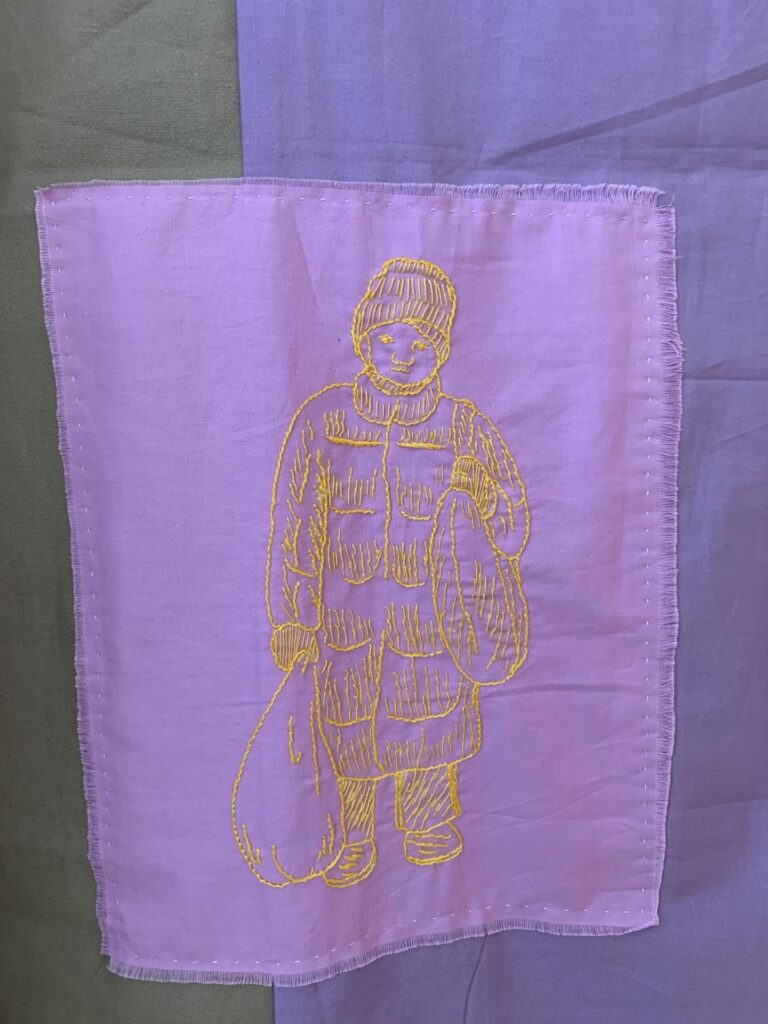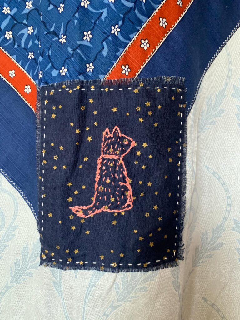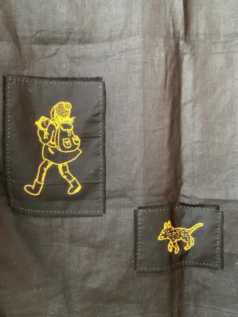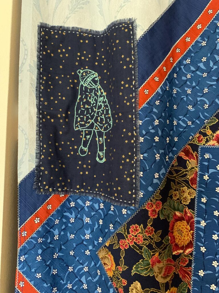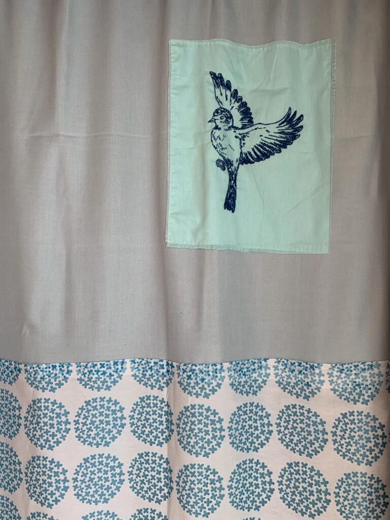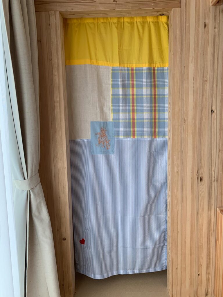 Specifically, the process involves sewing curtains using fabric or scraps you may have on hand. Once the curtains are sewn, small motifs from my artwork will be added through embroidery or appliqué in one to three places. The curtains will be simple flat panels without pleats. Participants can contribute in various ways—by sewing the curtains, donating fabric, or embroidering the small artwork details. Any form of support would be greatly appreciated. For those new to sewing, I will provide simple instructions. Upon completion, I would like to include a small acknowledgment of each contributor’s name.