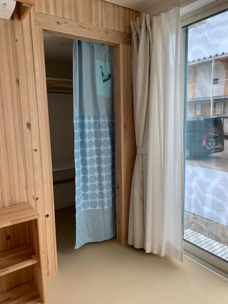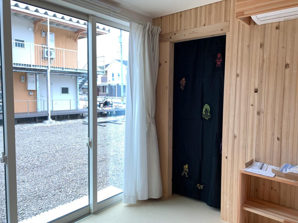 The construction of these temporary housing units, located near Mitsukejima in Suzu City, began on March 1. The buildings are being assembled using an LDT timber construction method that does not require adhesives. The plan is to complete 30 units before the early May holiday and the remaining 60 units by the end of June. The curtains need to be ready by this construction schedule.
