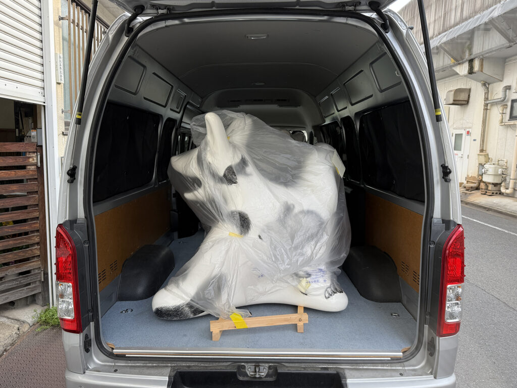 The Wolf Bench, which had been on display at the Osaka Expo for about six months, has completed its maintenance and was first transported from Osaka to Tokyo. From there, like a relay baton, it was passed along on its way to Iitate Village.