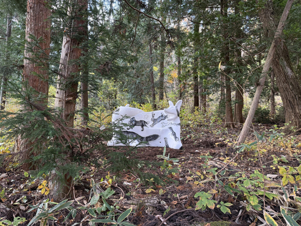 The Wolf Bench, which had been on display at the Osaka Expo for about six months, has completed its maintenance and was first transported from Osaka to Tokyo. From there, like a relay baton, it was passed along on its way to Iitate Village.