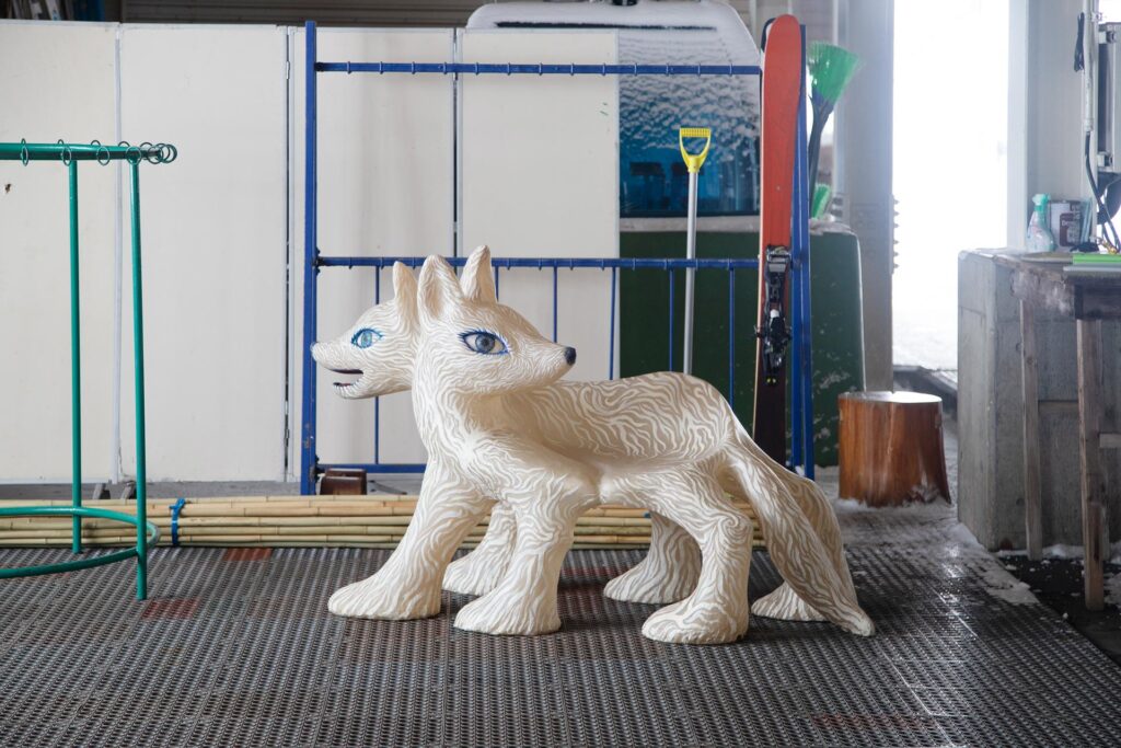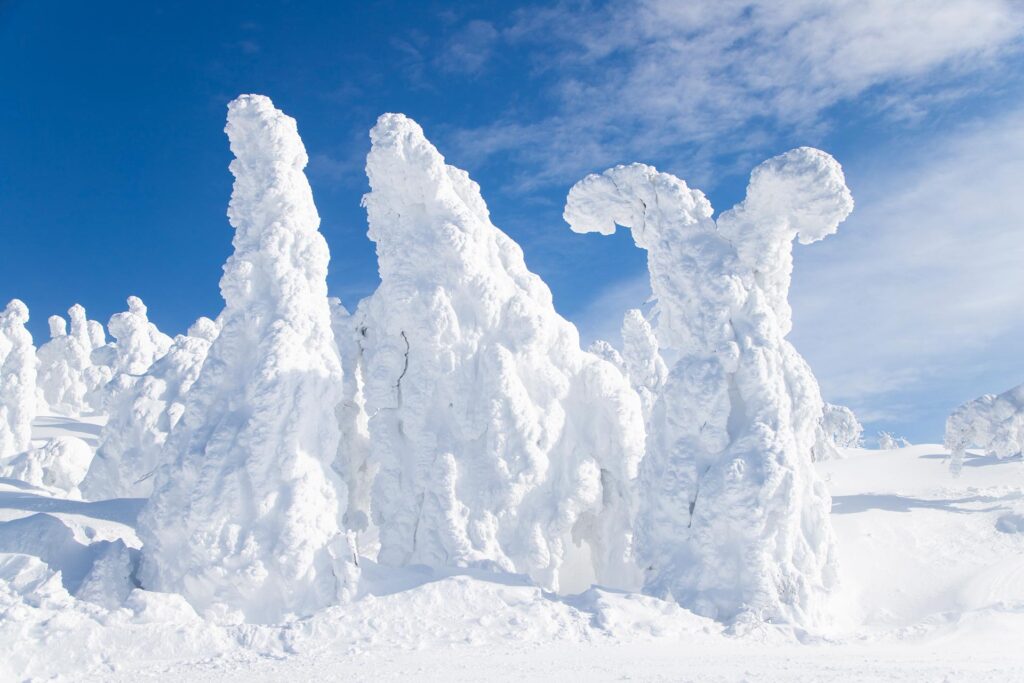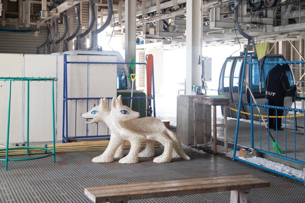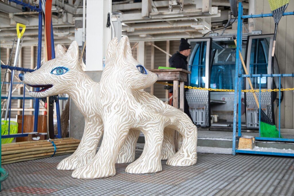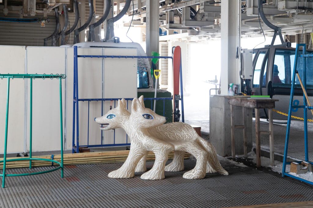 森吉山は、日本三大樹氷観賞地の一つとして有名ですが、鴻池さんは、2012年に森吉神社避難小屋に作品を設置した「美術館ロッジプロジェクト」や、森吉山の雪に埋もれながらドラえもんの歌を歌う「ドラえもんの歌 on 森吉山」など馴染みの場所でもあります。