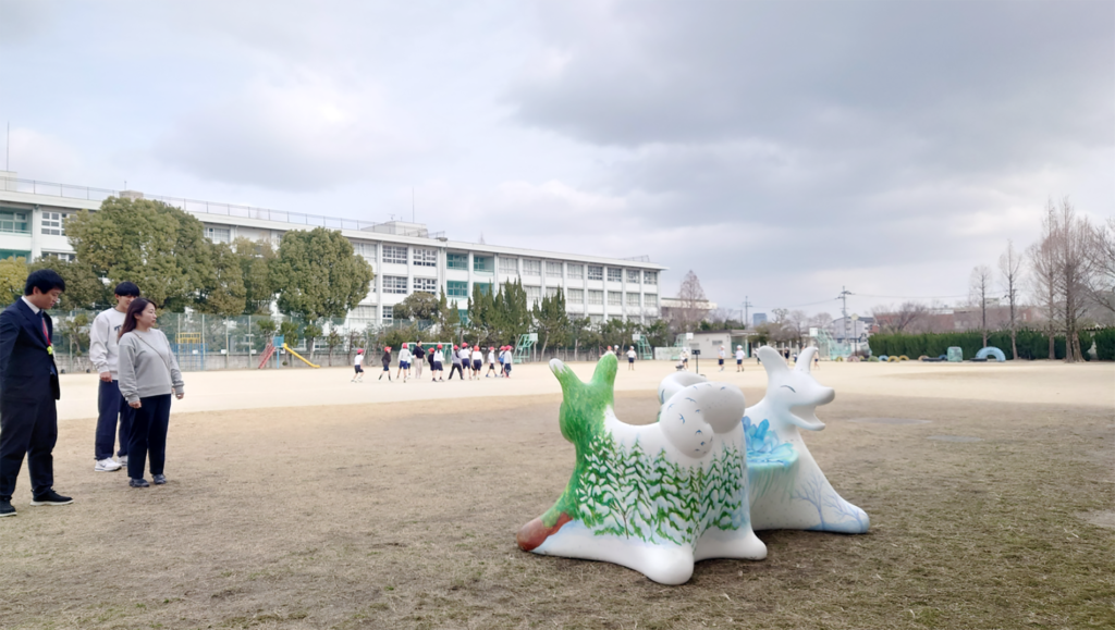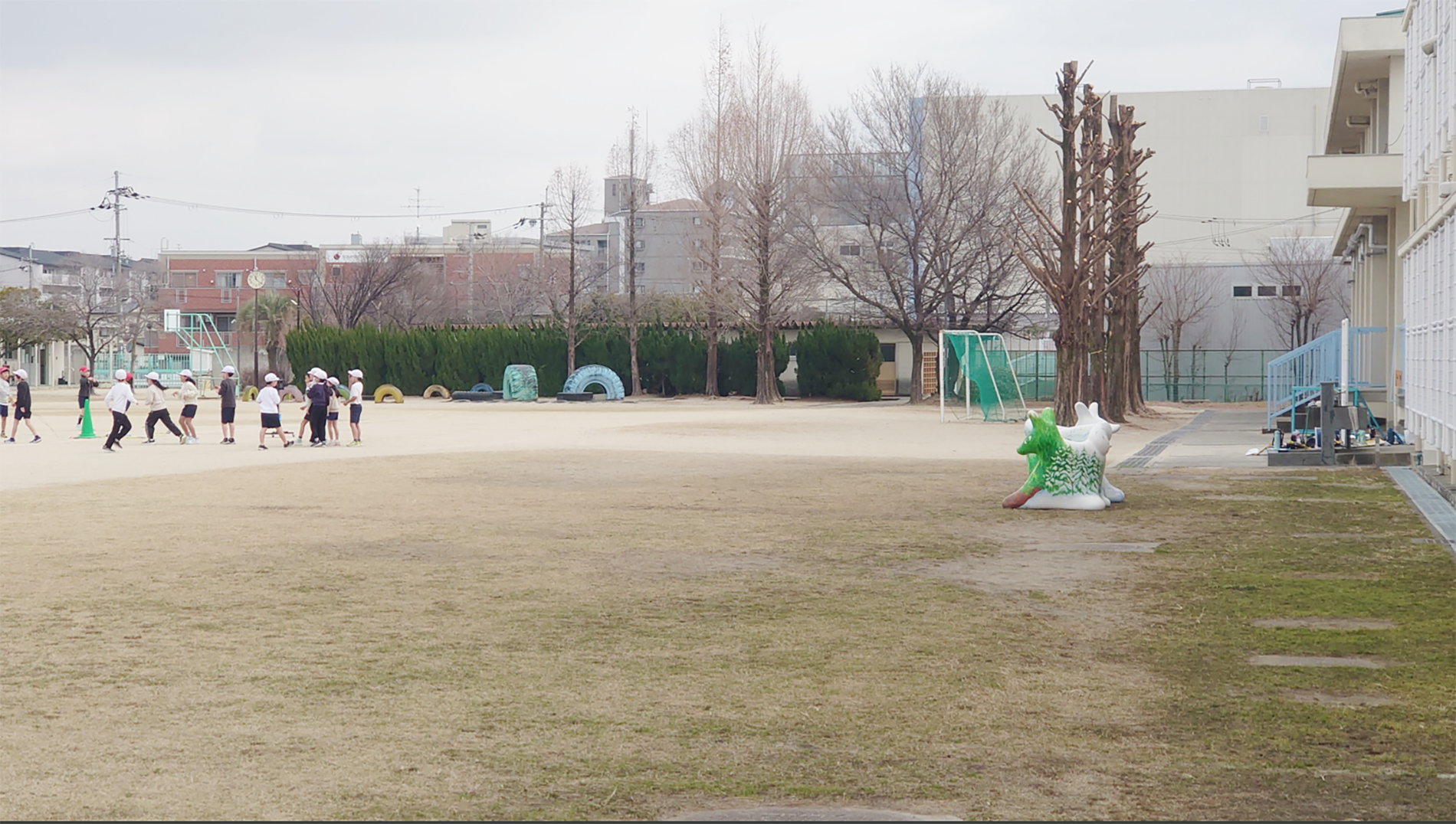 ・とりあえず校庭に。みんなから希望があれば移動するかもとのこと。
