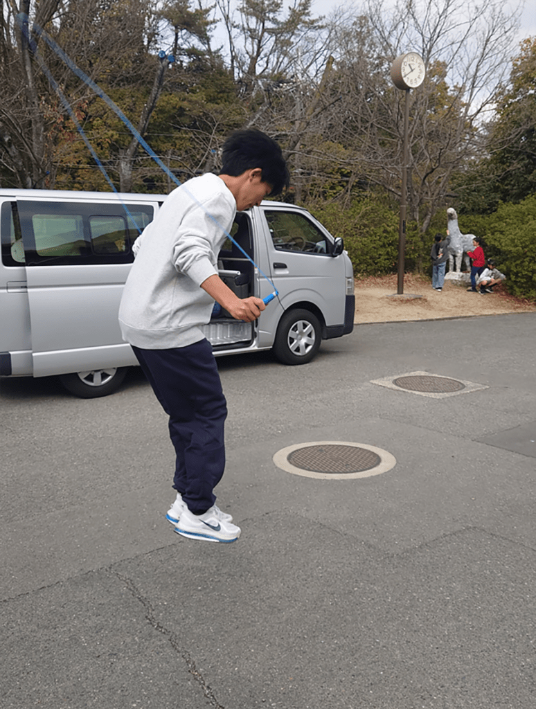 ・アシスタントの息子が後輩児童に三重飛びを披露