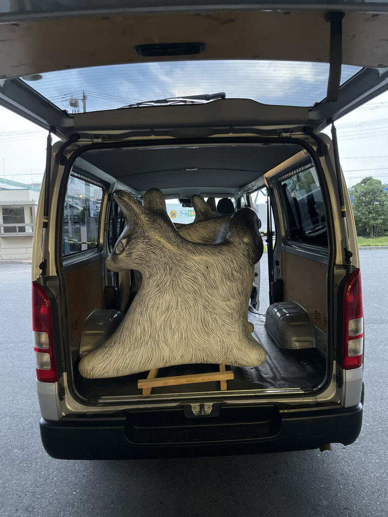 大阪・関西万博の鴻池朋子のオオカミベンチたちが、いよいよメディシン・インフラ プロジェクトとして全国へ旅立ちます。Wolf Bench/ Black & White Fur:2025年10月17日、大阪商工会議所、1階ロビーに設置されました。