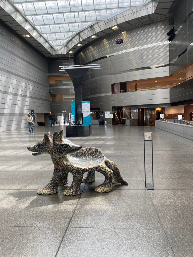 2022年に高松市美術館で開催された「みる誕生」展は、M2Fの展示コーナーでひっそりと「狼ベンチ(グレー)」は展示されていました。