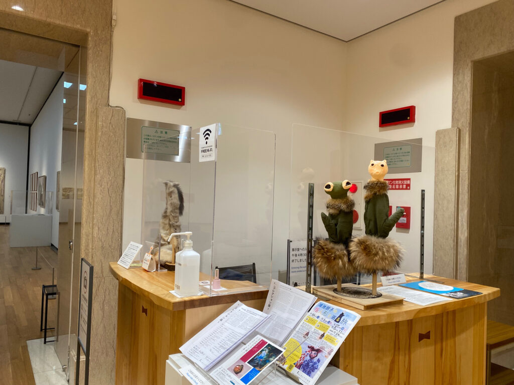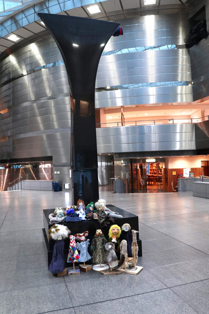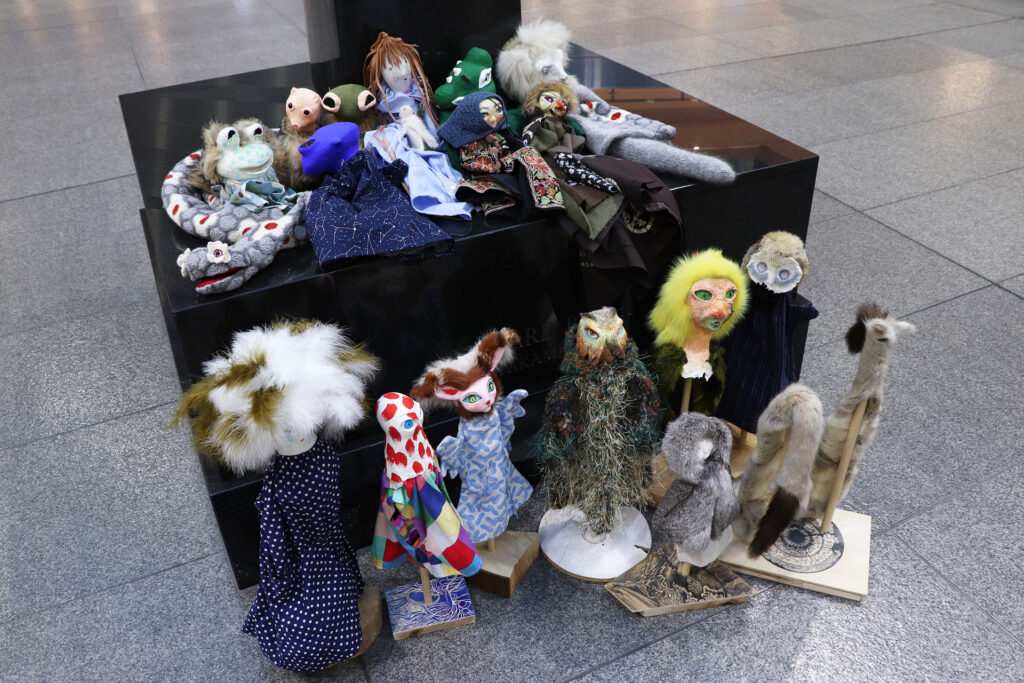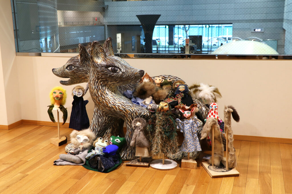 2025年4月、高松市美術館のコレクション展の《風が語った昔話》の前で、指人形のトンビフクロウと毛皮ちゃんによる朗読会が開かれました。