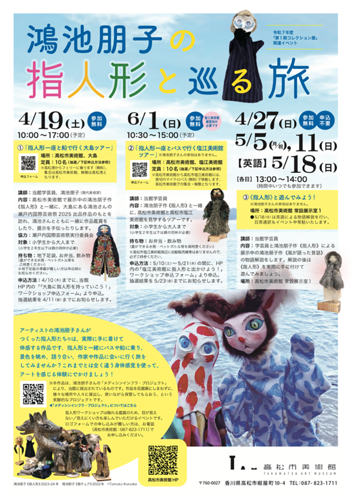 高松市美術館のワークショップで塩江美術館へ指人形一座と行くバスツアーが行われ、