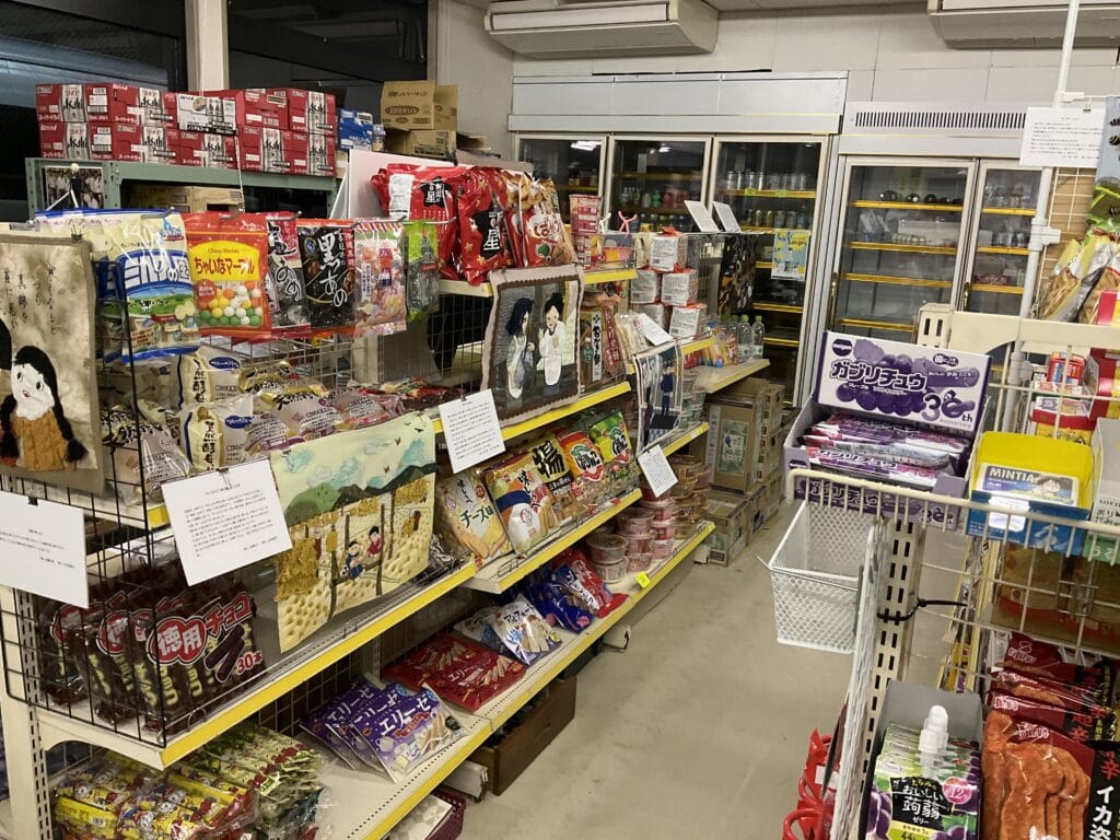 津波で破損した冷蔵庫も商品棚として再利用。もちろんそこにも展示させていただきました。ぜひお立ち寄りください。